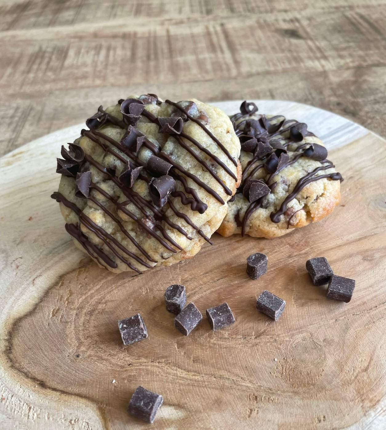 Boordevol melk en pure chocolade chips, gedecoreerd met een pure chocolade swirl en chocoladekrullen. Heerlijk zacht van binnen en knapperig van buiten!