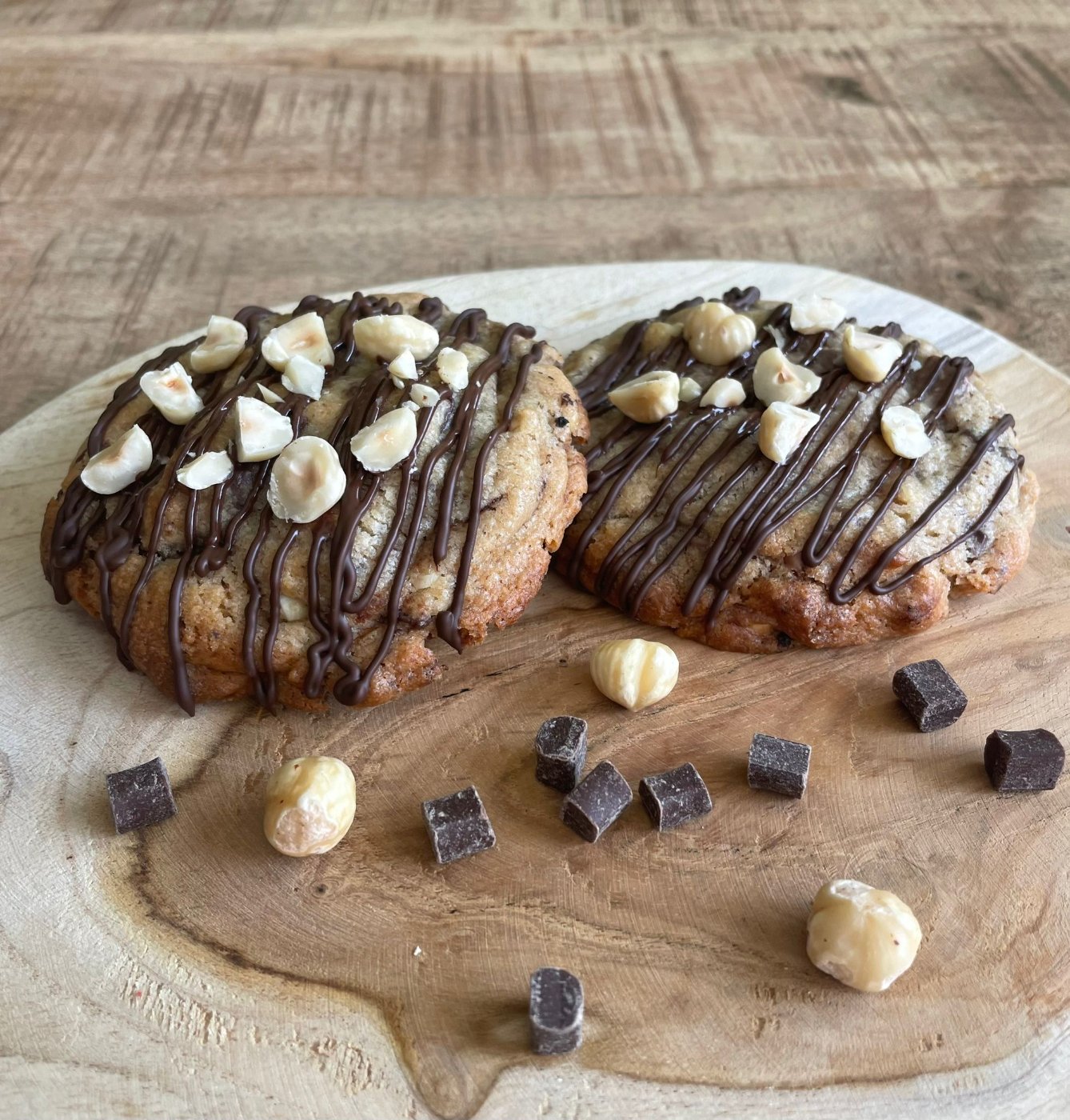 melk en pure chocolade chips, geroosterde stukken hazelnoot en een heerlijke nutella vulling