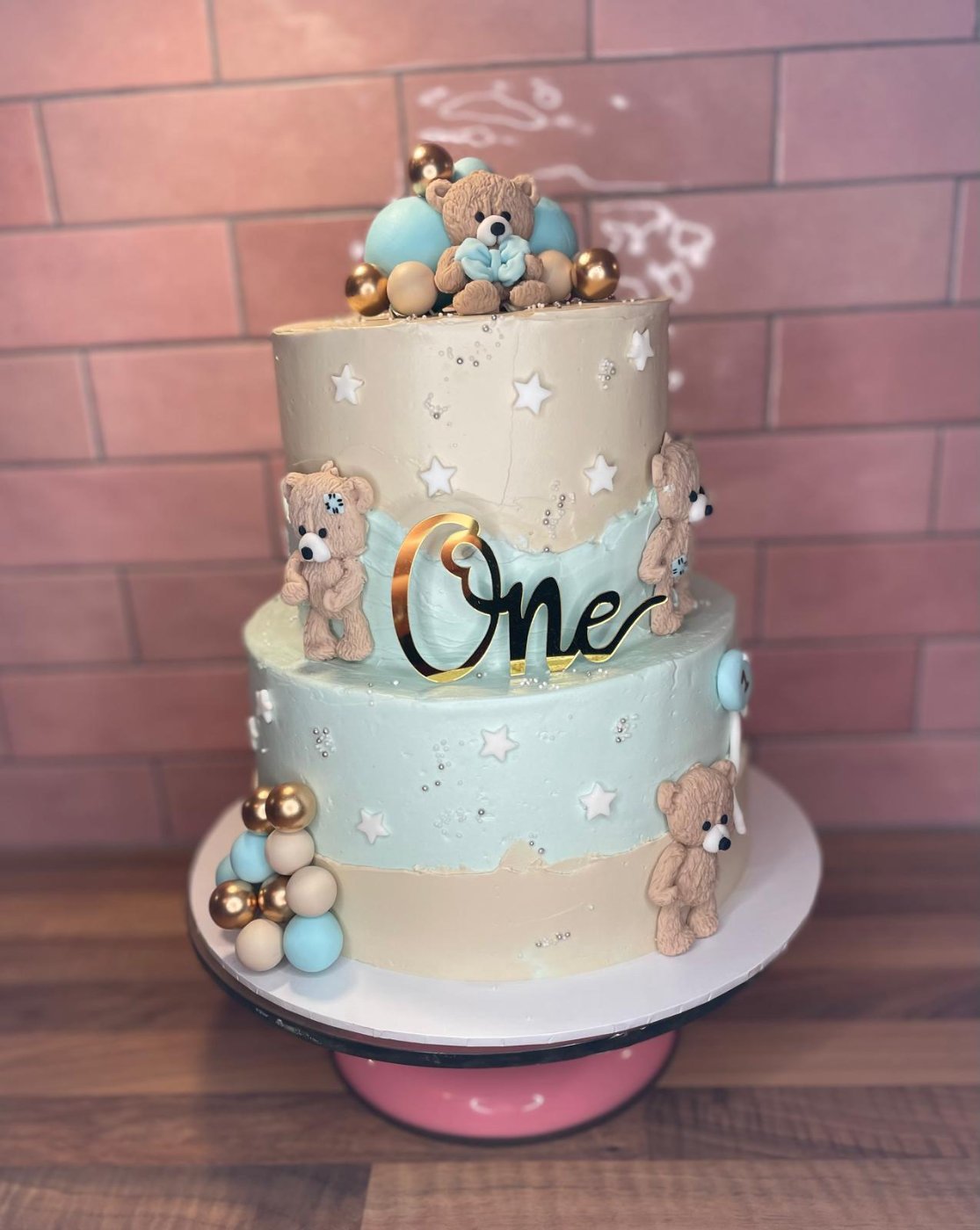 Taart in thema naar wens afgewerkt met meringue botercreme